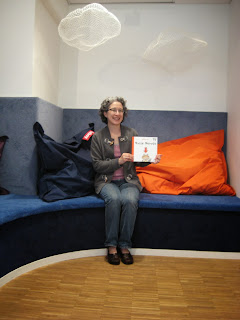 Here I am holding Nutte Nervös (aka Scaredy Squirrel) in the children's section of Husby library. Husby is a Stockholm suburb that experienced rioting in May - but was the site of a vibrant multicultural festival three months later!